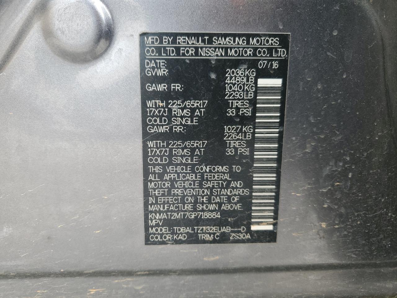 2016 NISSAN ROGUE S из США