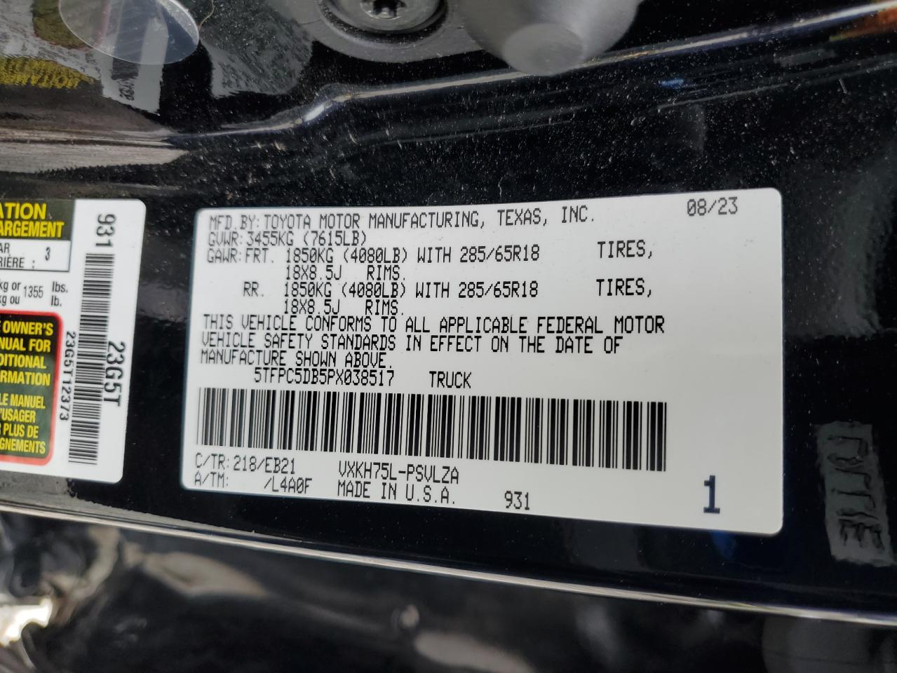 - ВИН: 5TFPC5DB5PX******