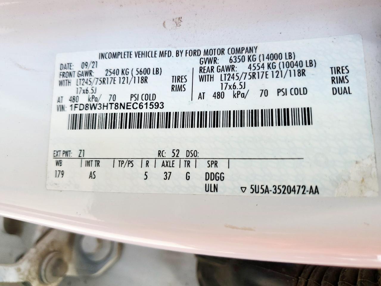 - ВИН: 1FD8W3HT8NE******