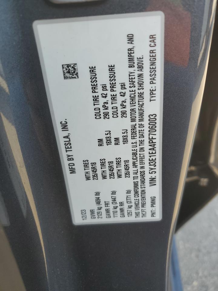 - ВИН: 5YJ3E1EA4PF******