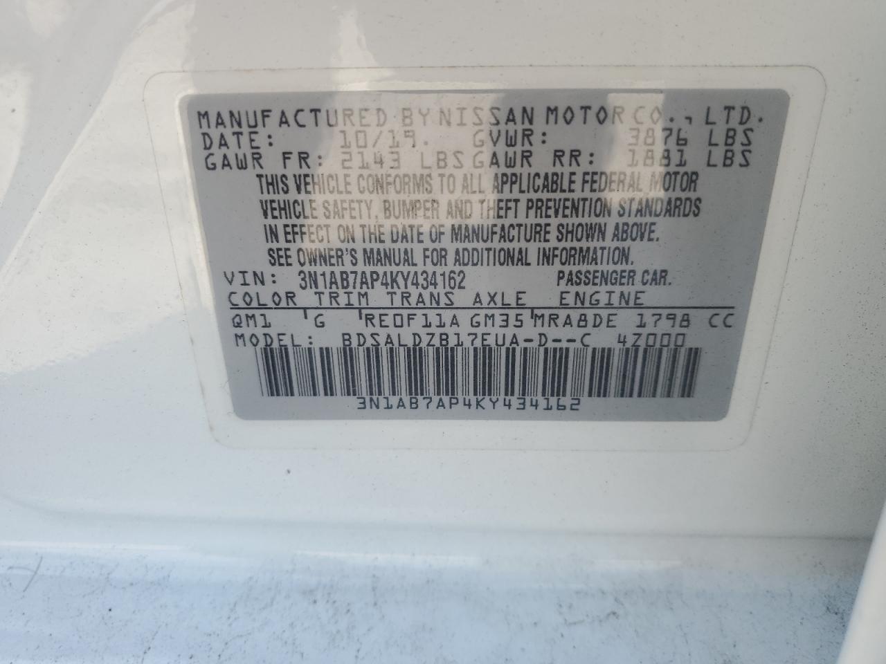 - ВИН: 3N1AB7AP4KY******