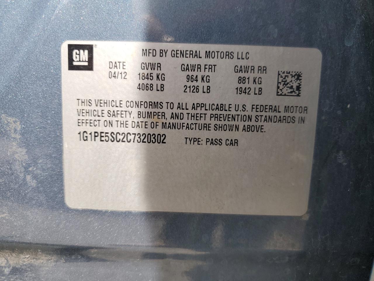 - ВИН: 1G1PE5SC2C7******