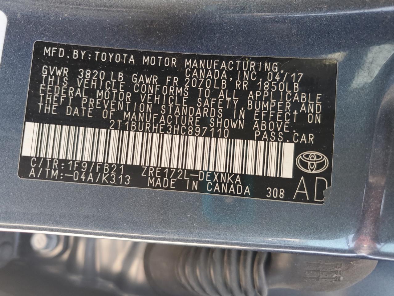 2017 TOYOTA COROLLA L из США