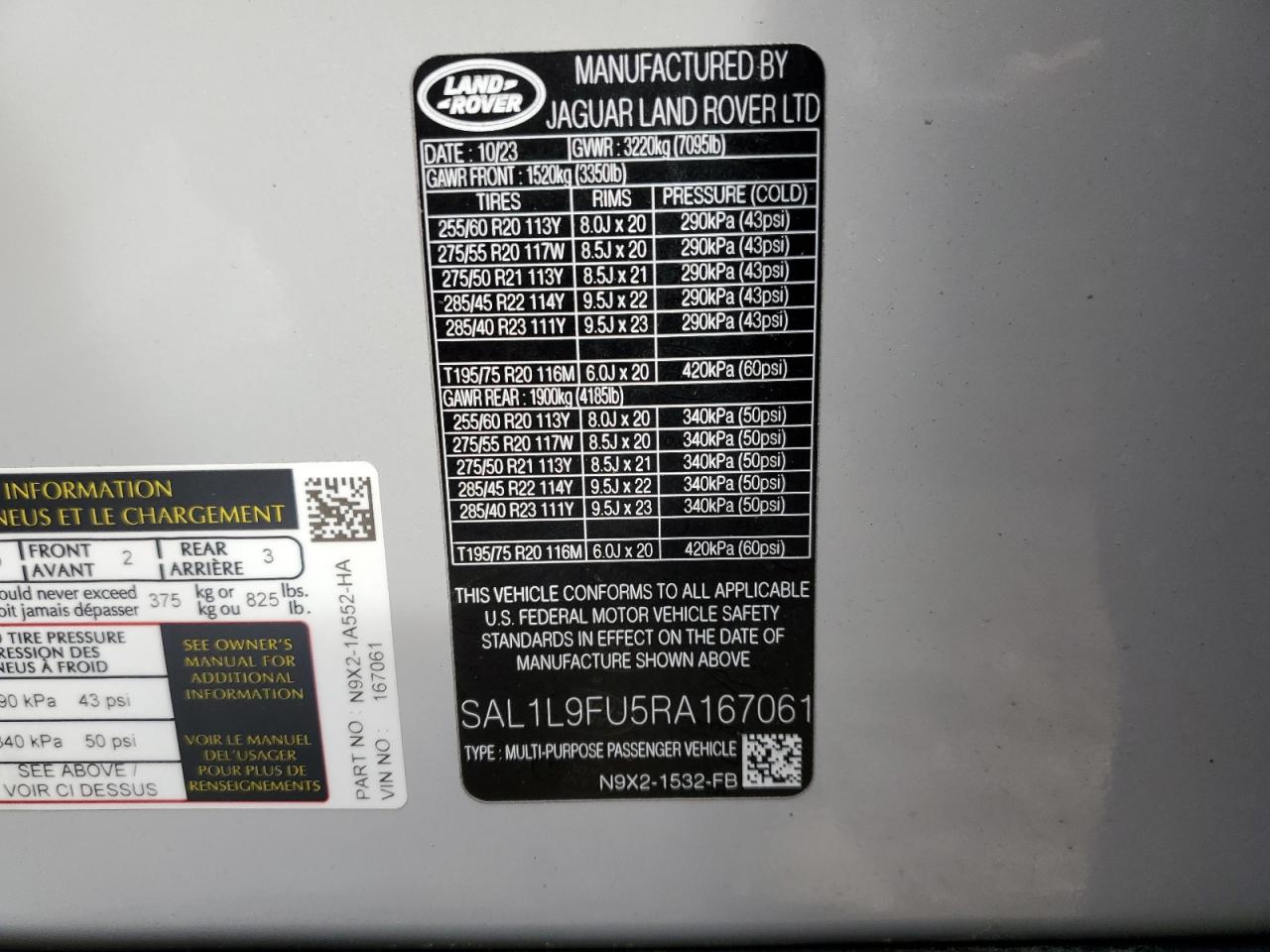 - ВИН: SAL1L9FU5RA******