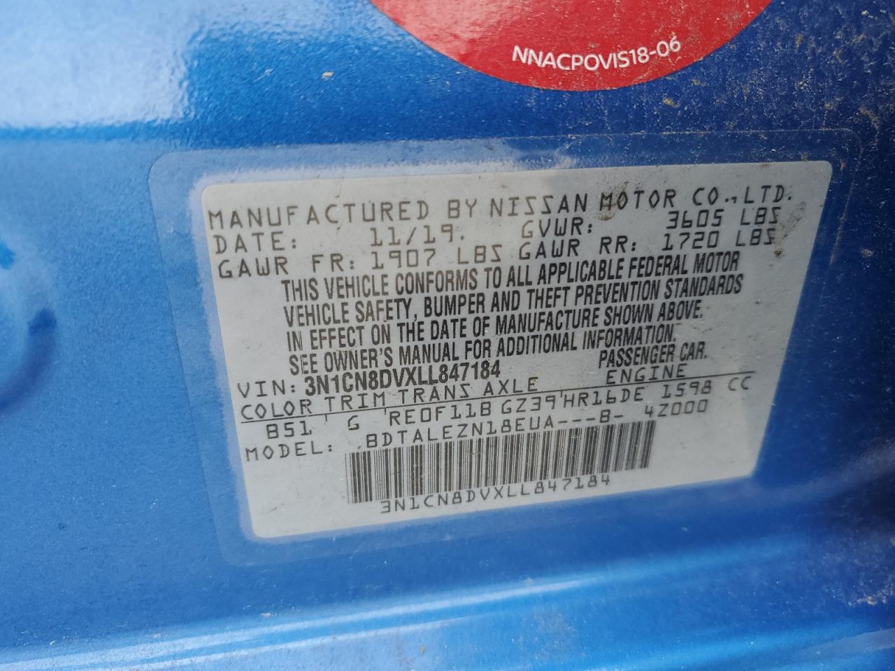 - ВИН: 3N1CN8DVXLL******