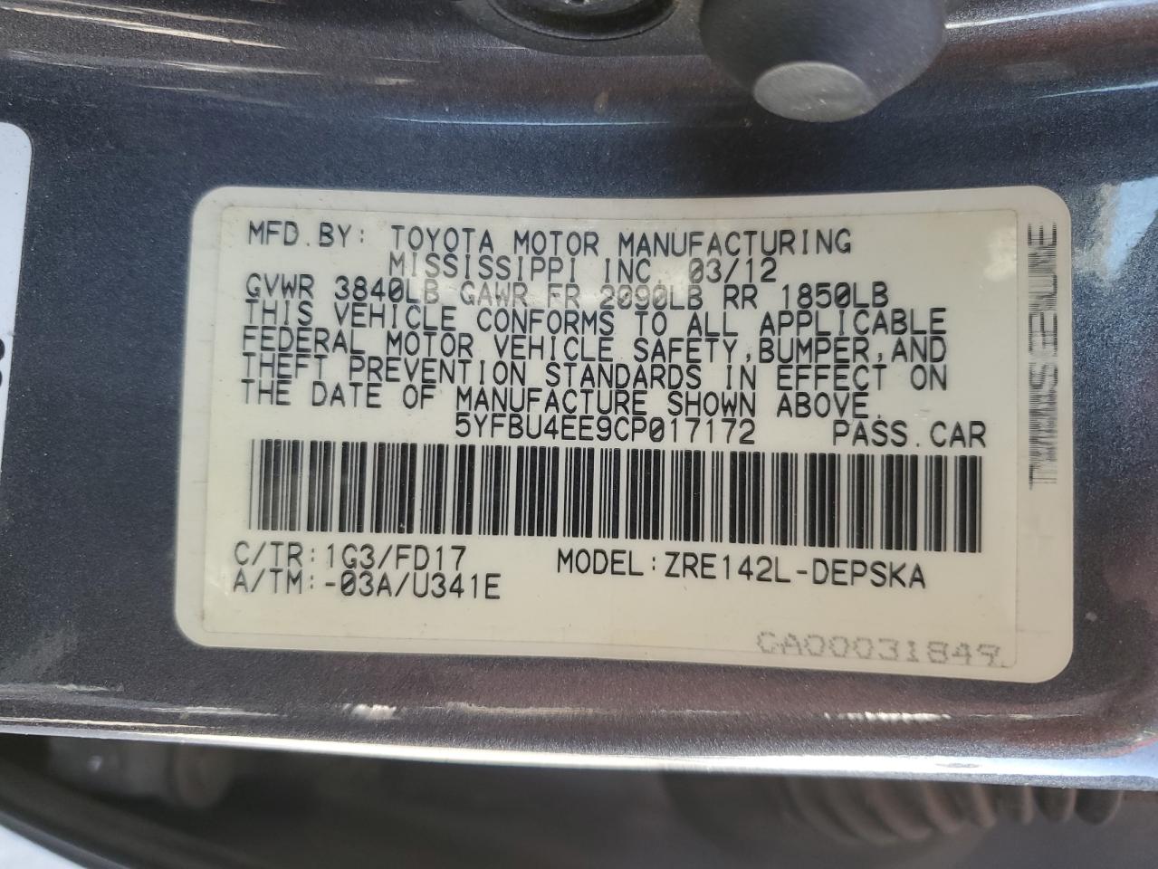 - ВИН: 5YFBU4EE9CP******