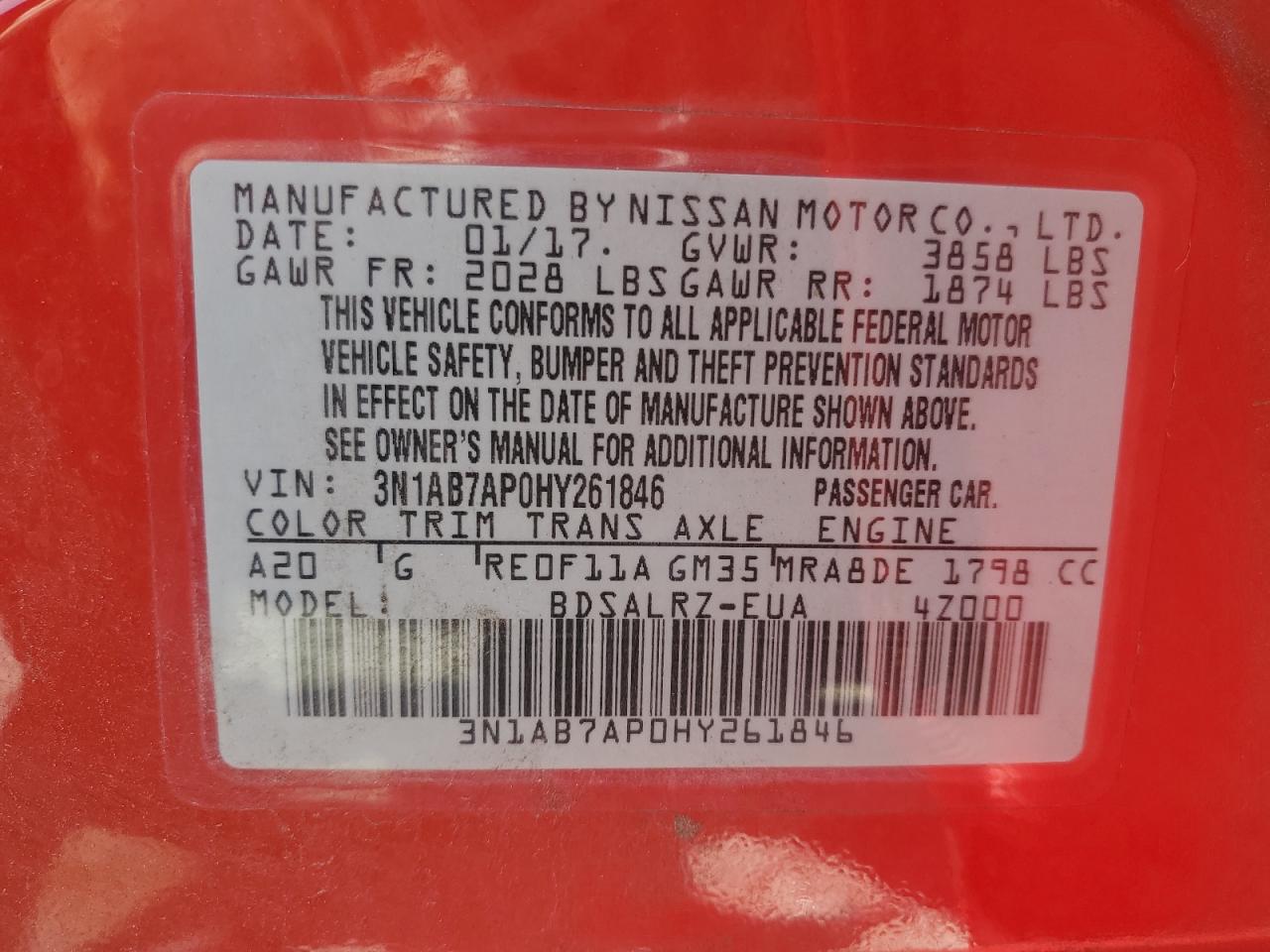 2017 NISSAN SENTRA S из США