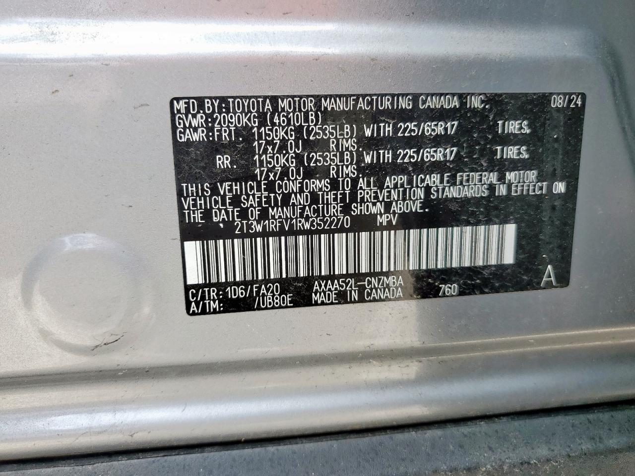 - ВИН: 2T3W1RFV1RW******