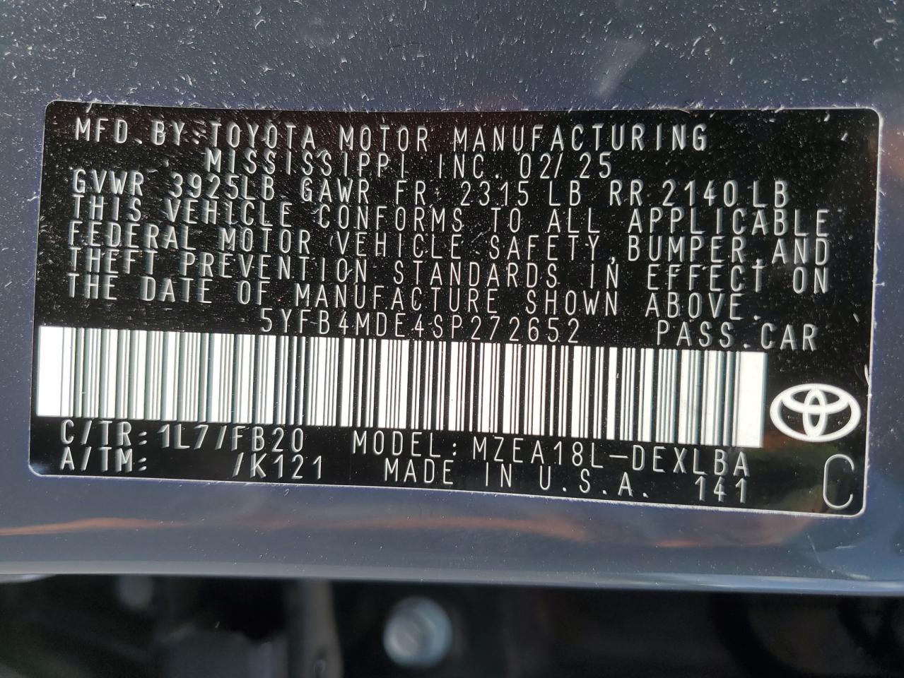 - ВИН: 5YFB4MDE4SP******