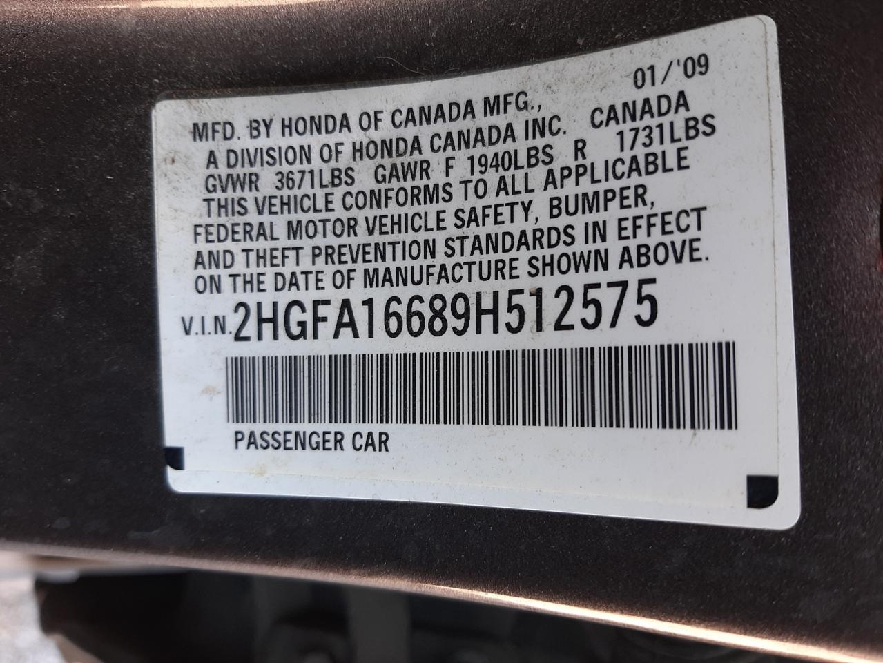 - ВИН: 2HGFA16689H******