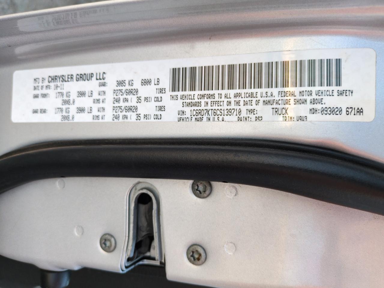 - ВИН: 1C6RD7KT6CS******