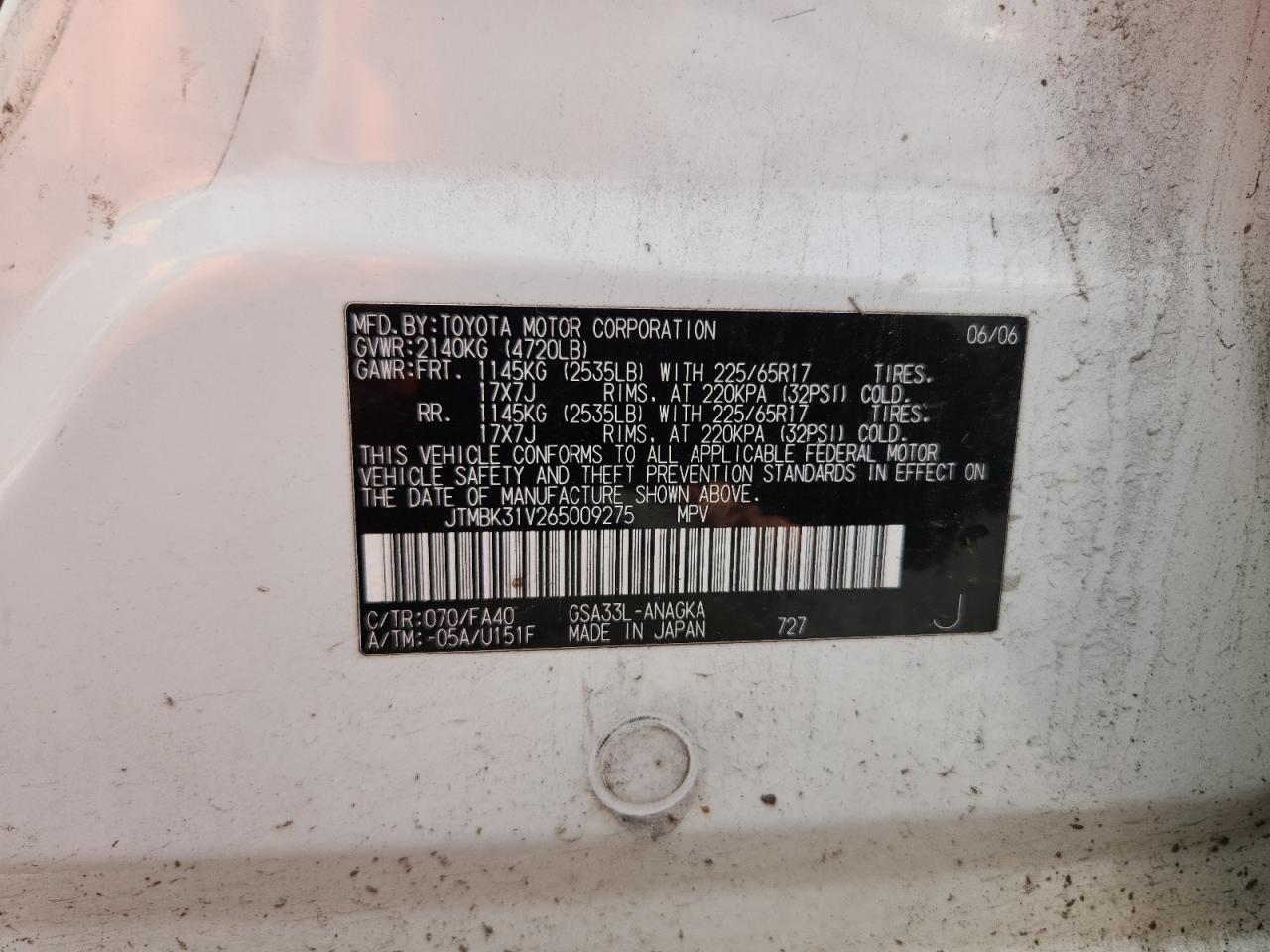 - ВИН: JTMBK31V265******