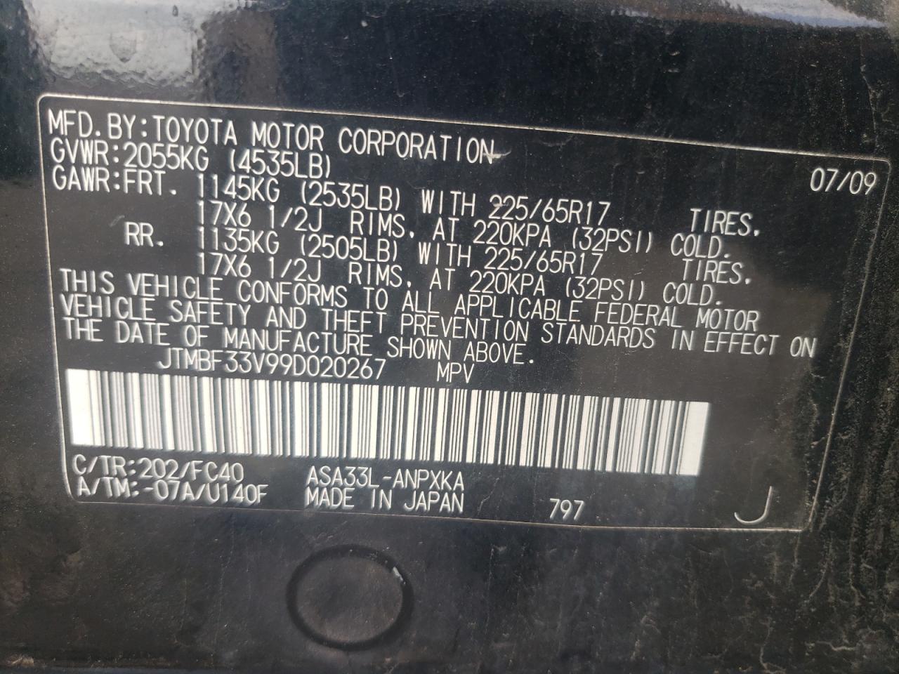 - ВИН: JTMBF33V99D******