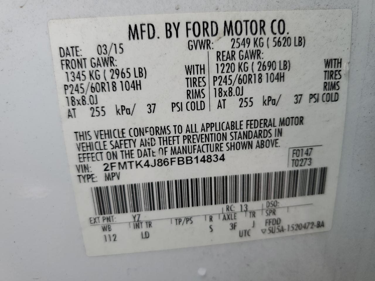 - ВИН: 2FMTK4J86FB******
