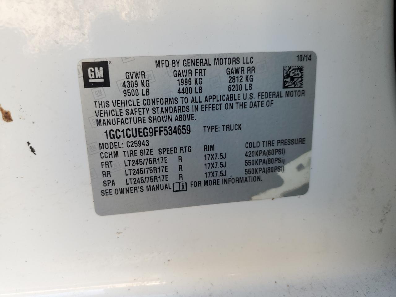 - ВИН: 1GC1CUEG9FF******
