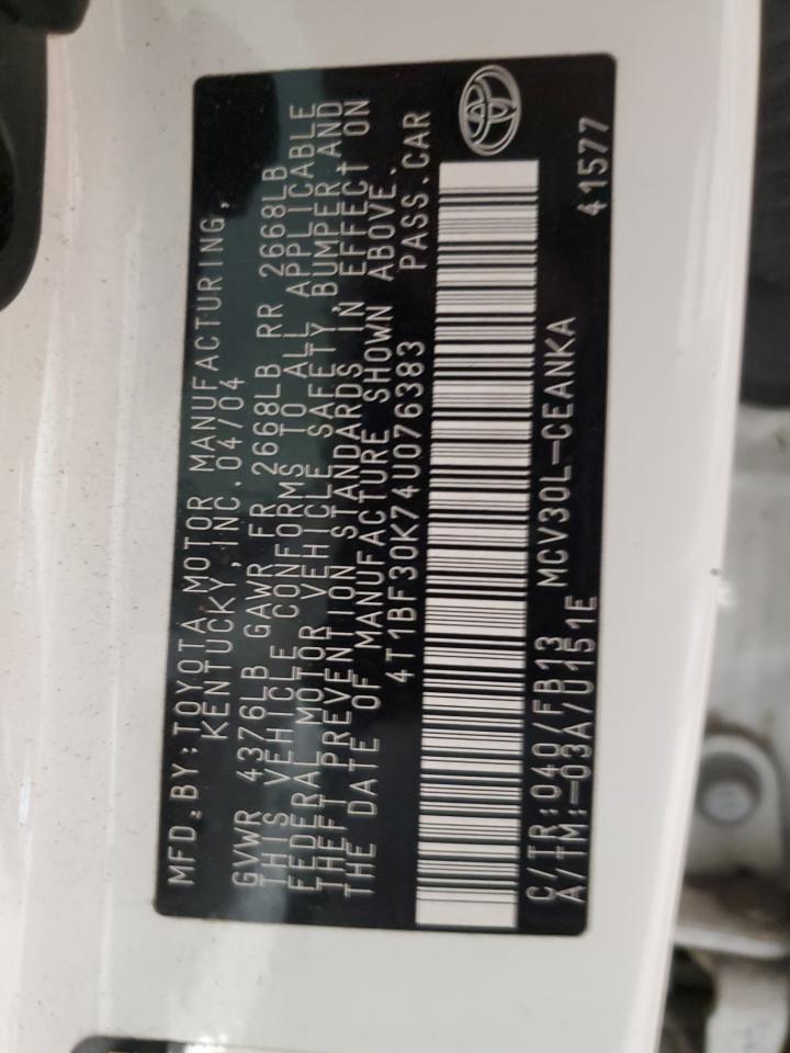 - ВИН: 4T1BF30K74U******