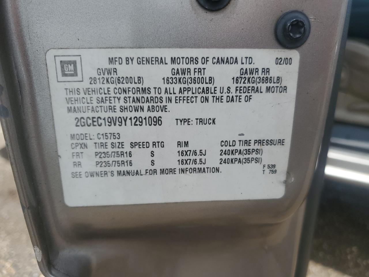 - ВИН: 2GCEC19V9Y1******