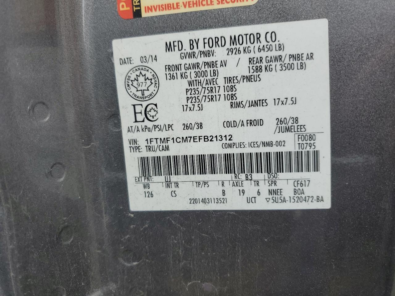 - ВИН: 1FTMF1CM7EF******