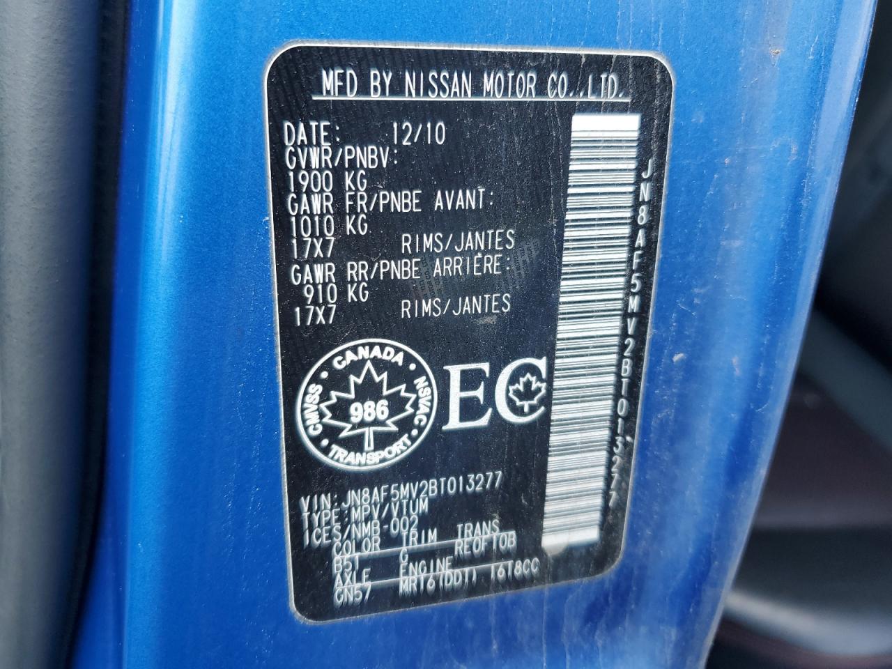 - ВИН: JN8AF5MV2BT******