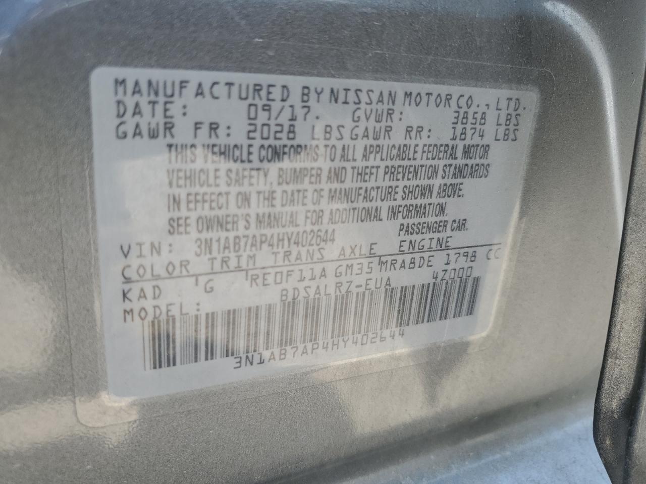 2017 NISSAN SENTRA S из США