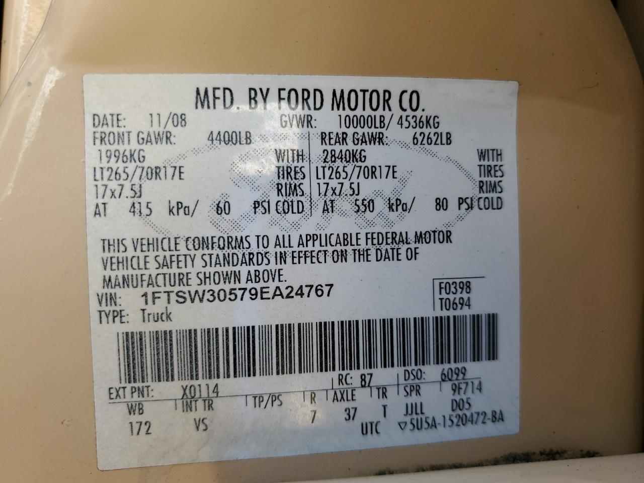 - ВИН: 1FTSW30579E******