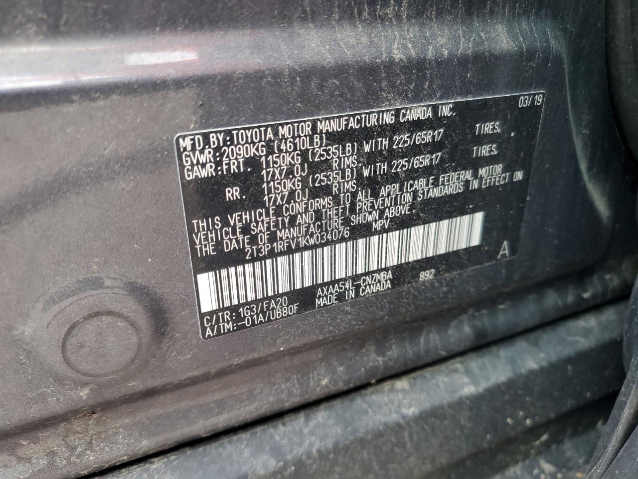 - ВИН: 2T3P1RFV1KW******