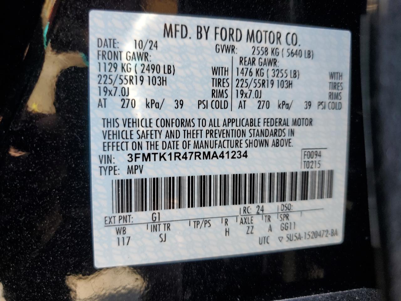 - ВИН: 3FMTK1R47RM******