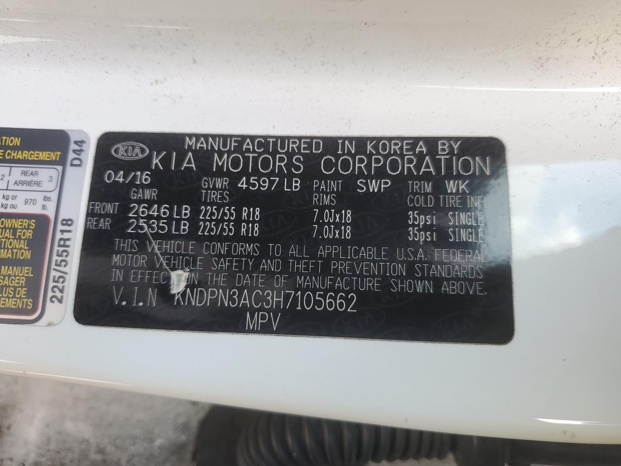 - ВИН: KNDPN3AC3H7******