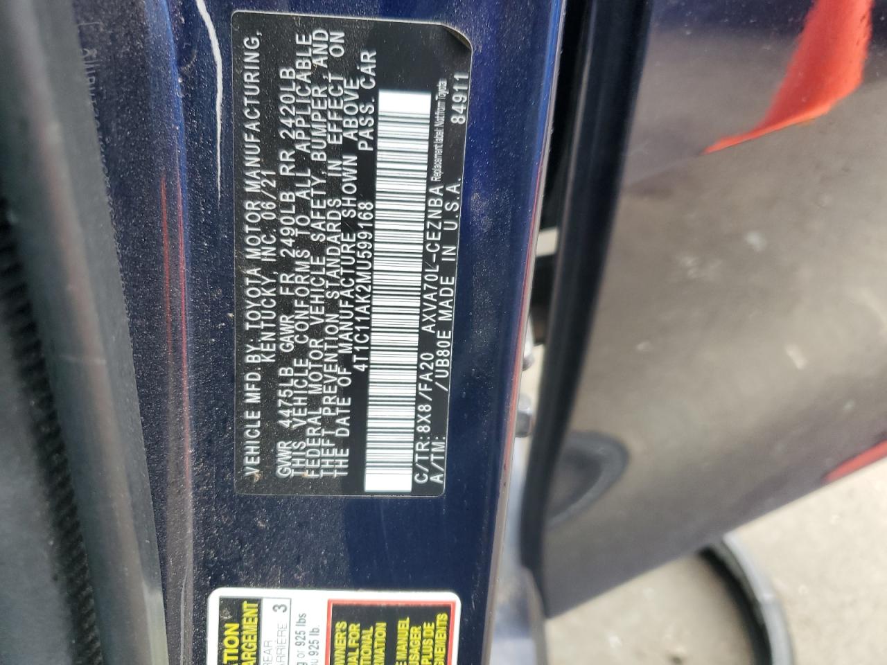2021 TOYOTA CAMRY LE из США