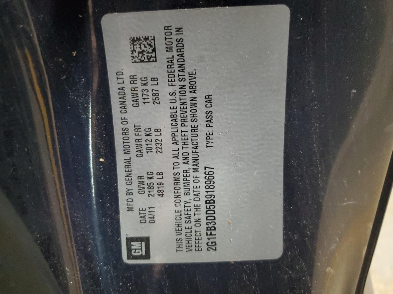 - ВИН: 2G1FB3DD5B9******