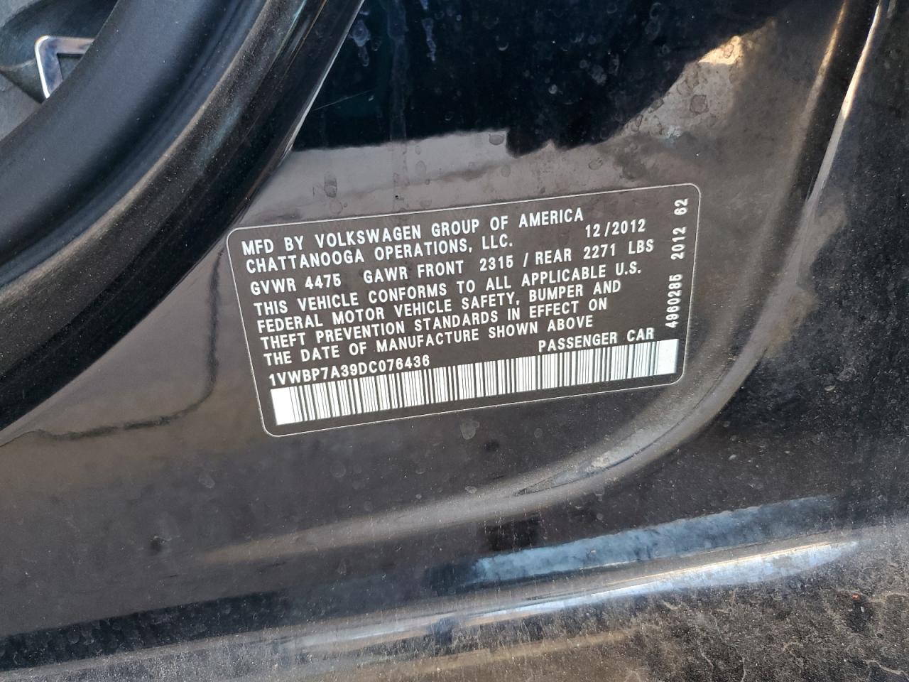 - ВИН: 1VWBP7A39DC******