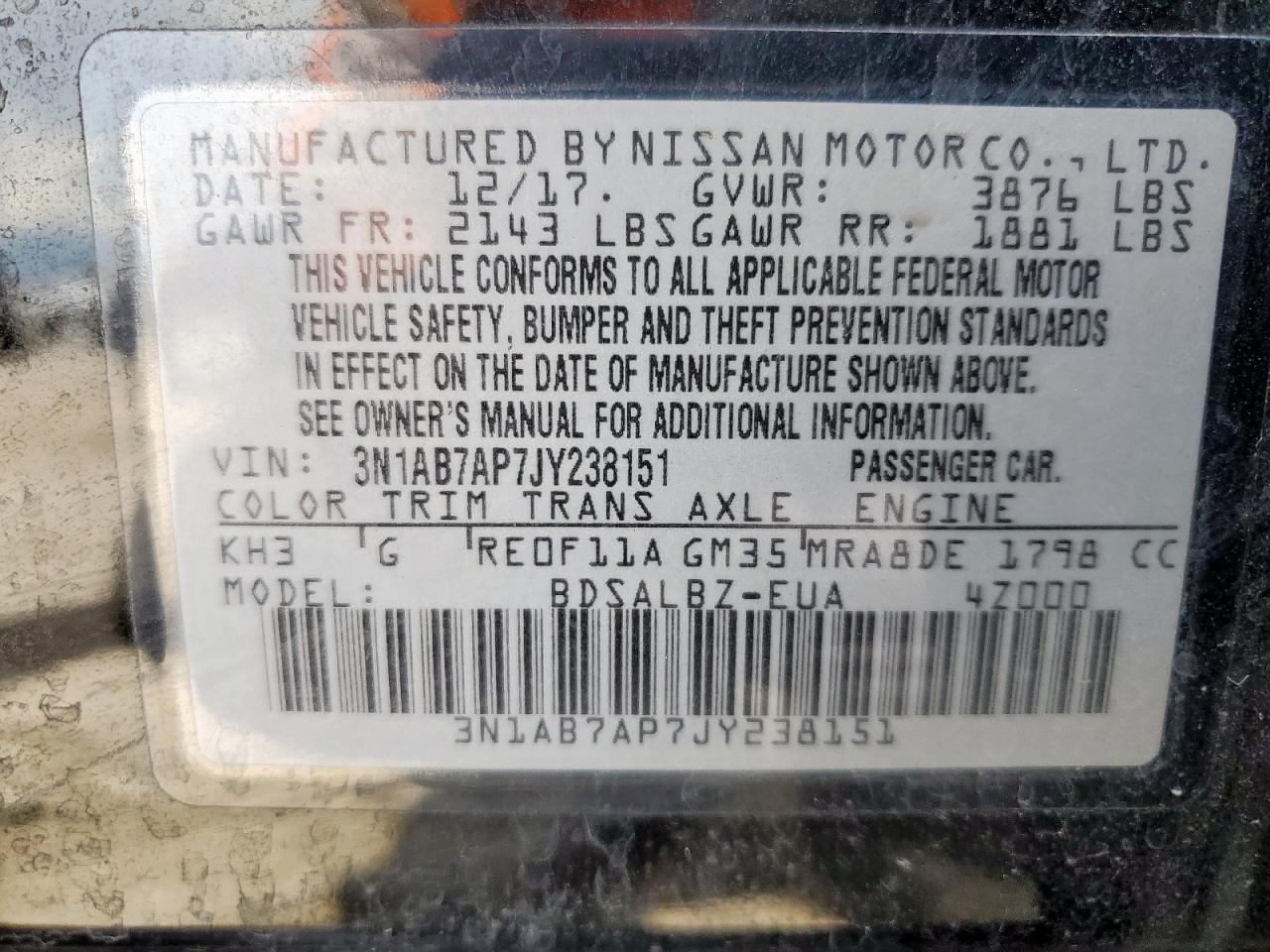 2018 NISSAN SENTRA S из США