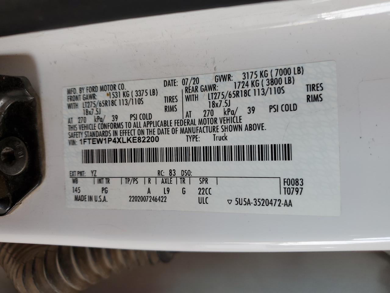 - ВИН: 1FTEW1P4XLK******