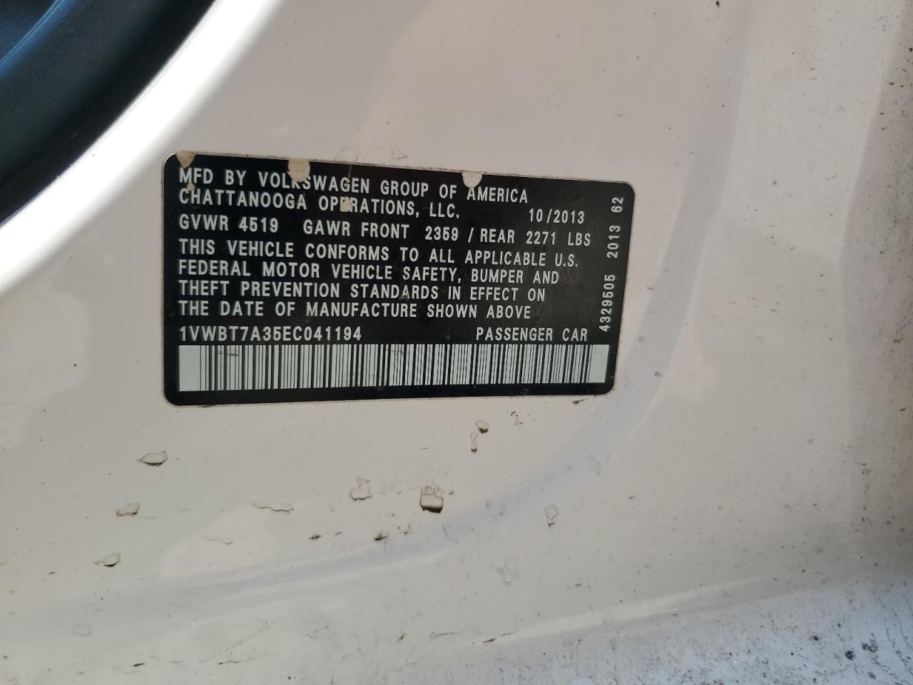 - ВИН: 1VWBT7A35EC******
