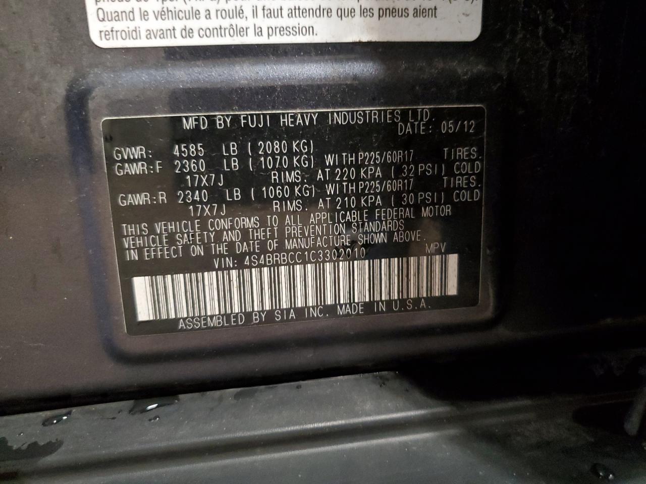 - ВИН: 4S4BRBCC1C3******