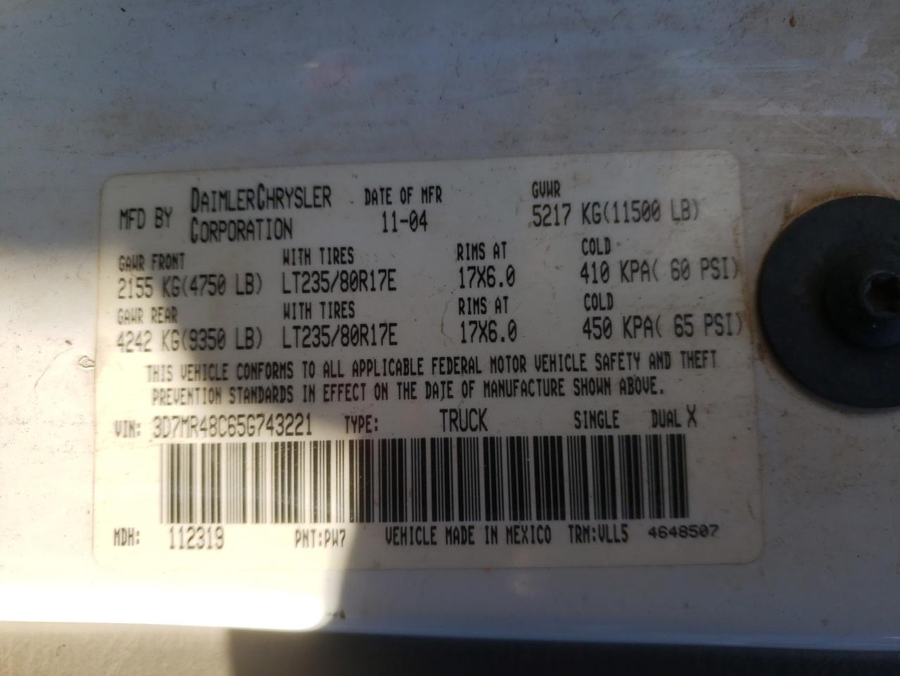 - ВИН: 3D7MR48C65G******