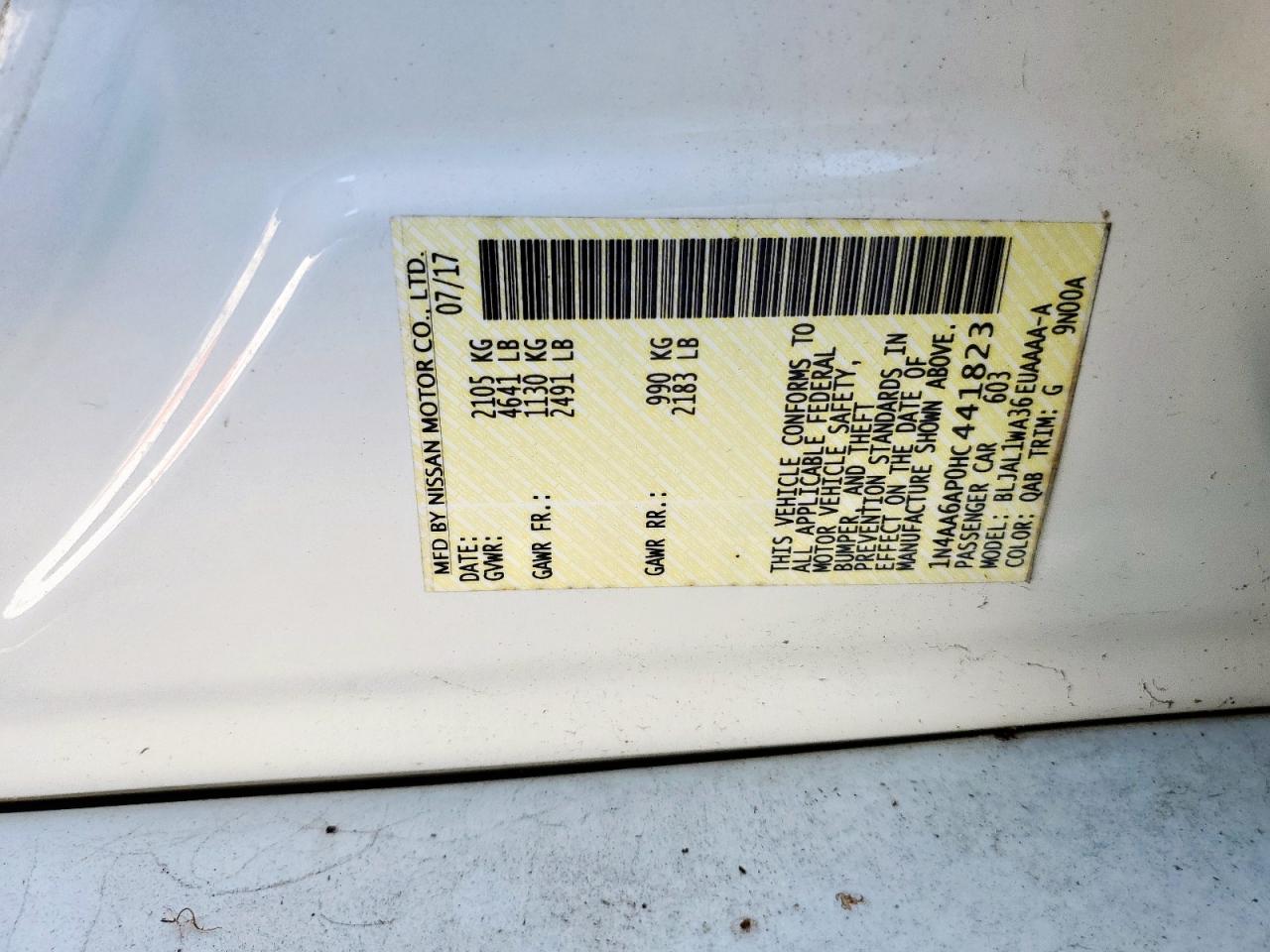 - ВИН: 1N4AA6AP0HC******