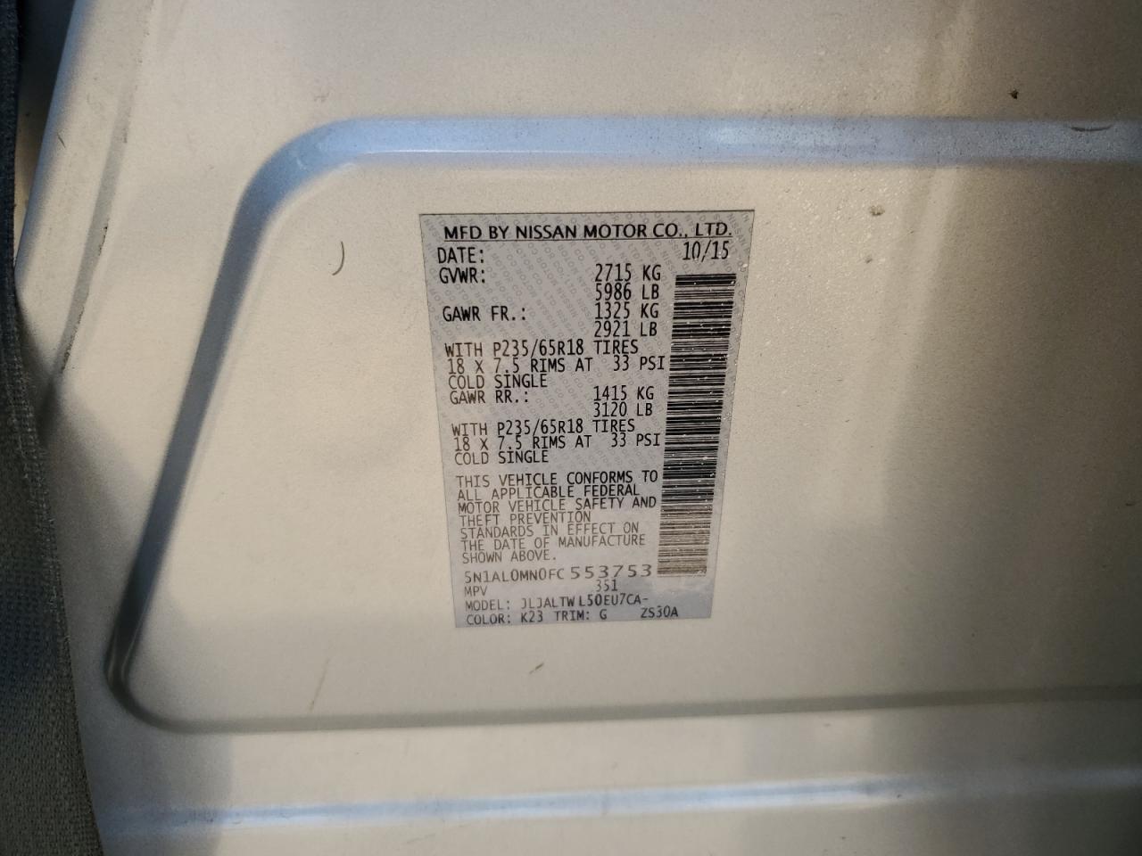 - ВИН: 5N1AL0MN0FC******
