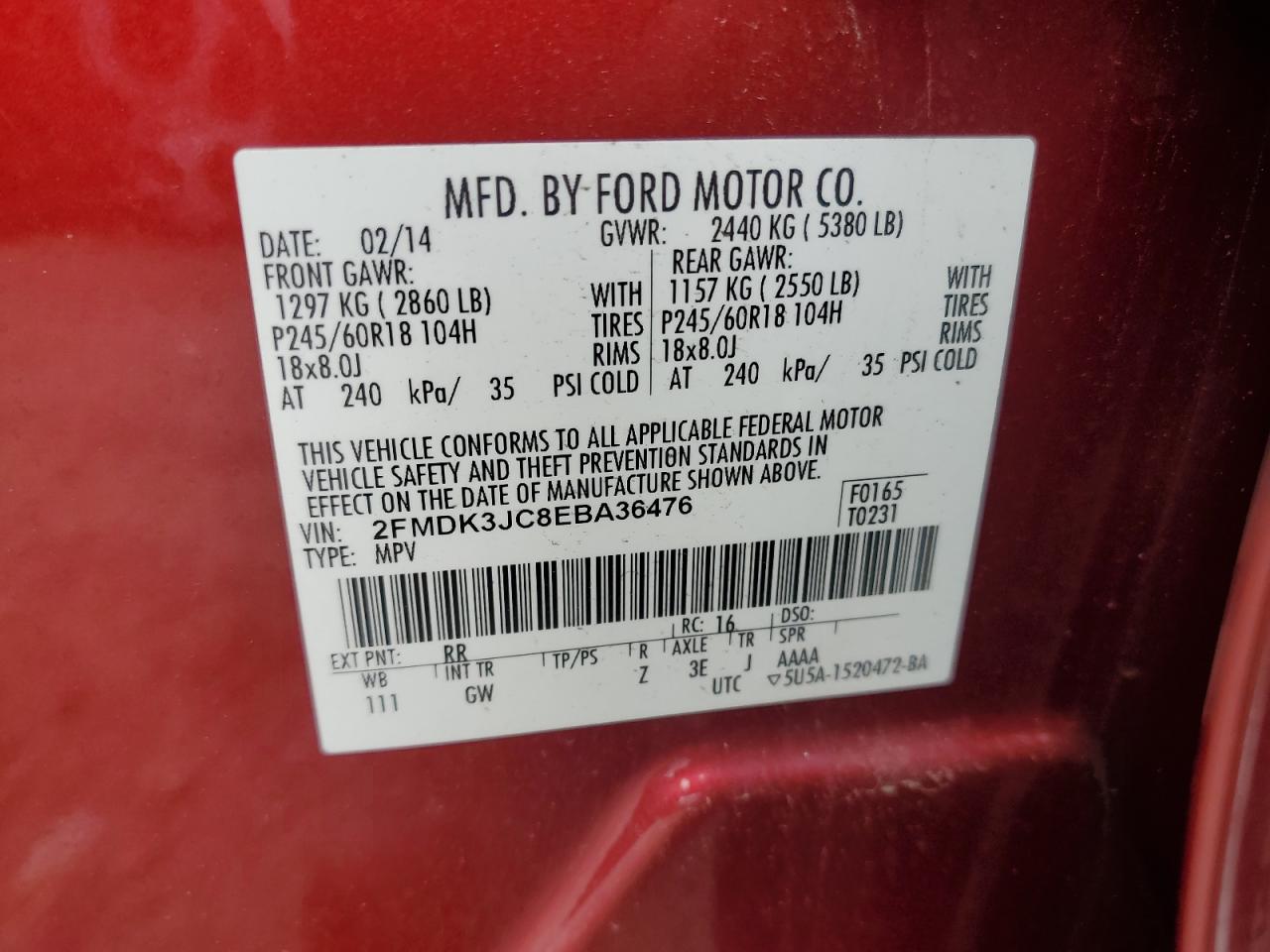 - ВИН: 2FMDK3JC8EB******