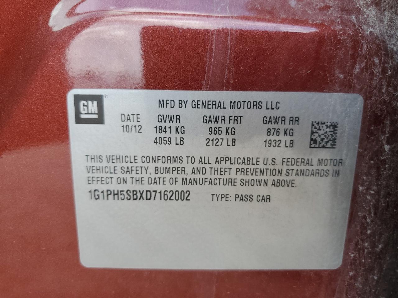 - ВИН: 1G1PH5SBXD7******
