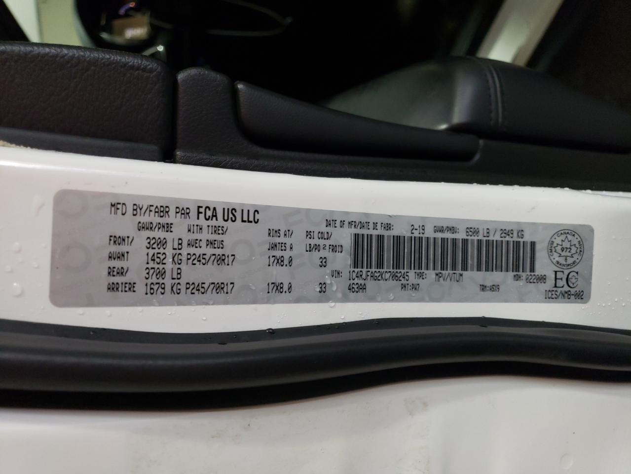 - ВИН: 1C4RJFAG2KC******