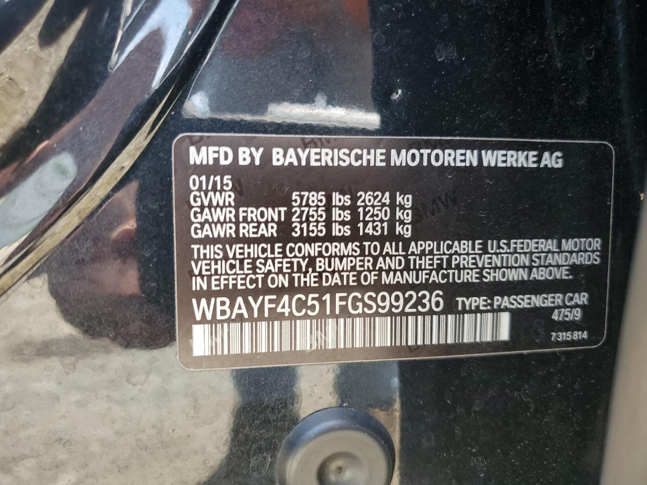 - ВИН: WBAYF4C51FG******