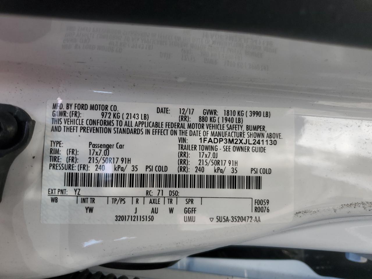 - ВИН: 1FADP3M2XJL******