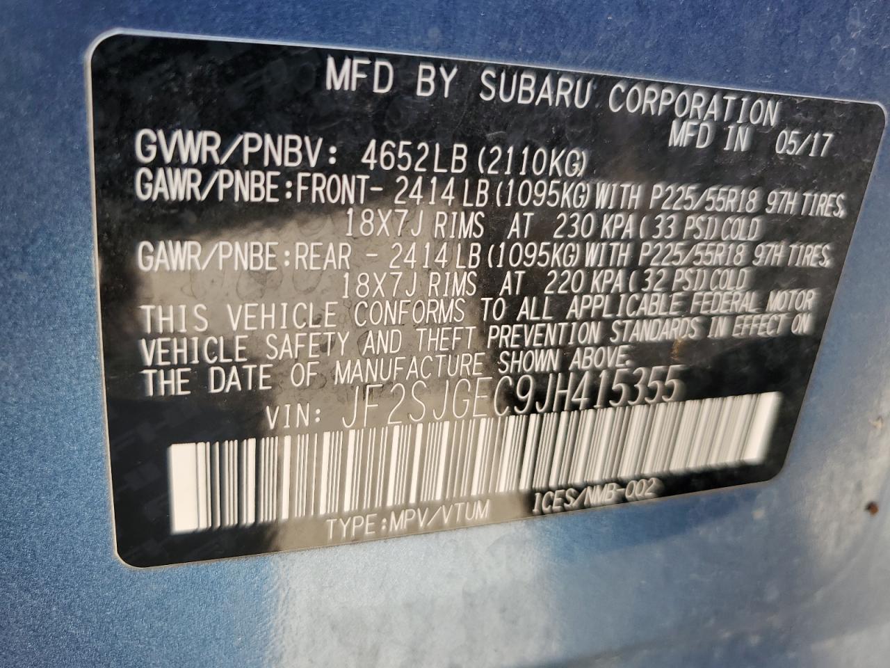 - ВИН: JF2SJGEC9JH******