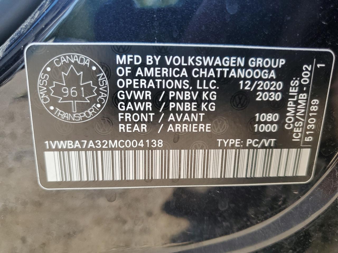 - ВИН: 1VWBA7A32MC******