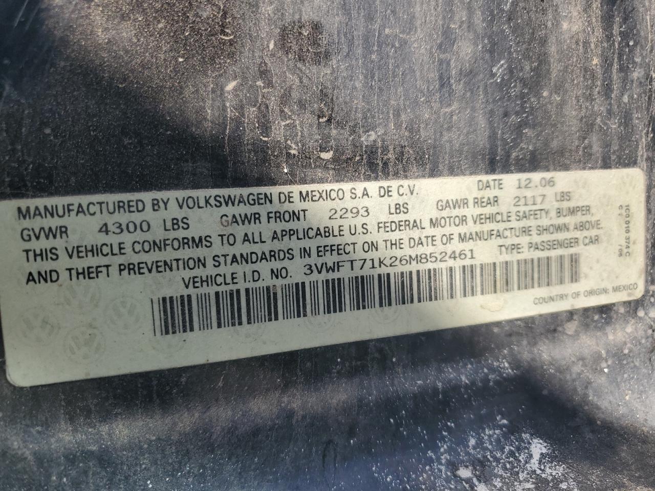 - ВИН: 3VWFT71K26M******