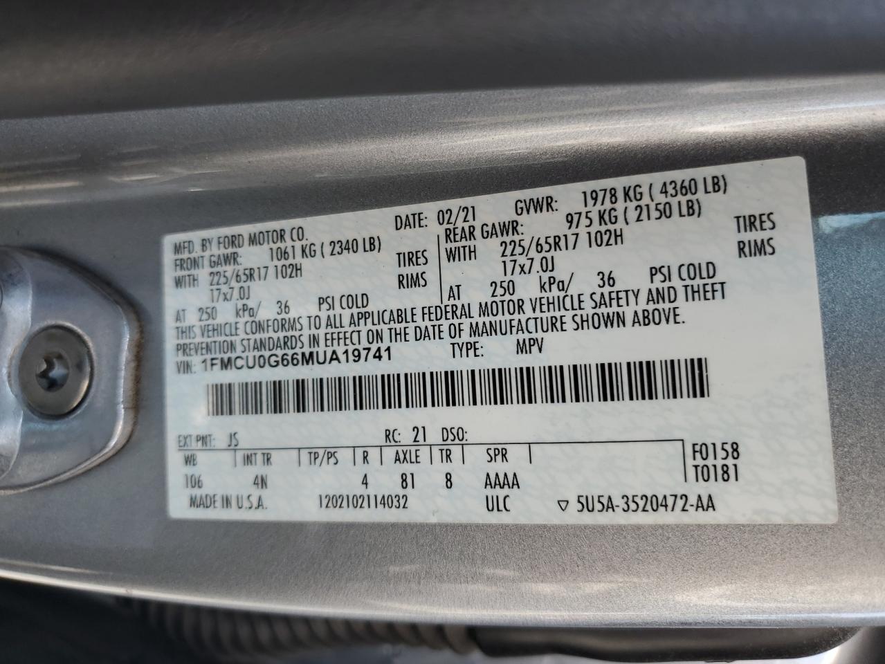 - ВИН: 1FMCU0G66MU******