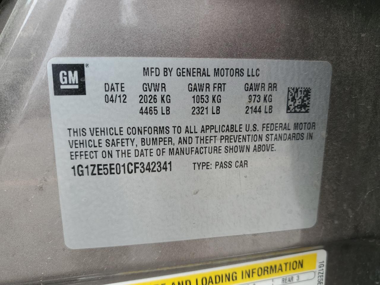 - ВИН: 1G1ZE5E01CF******