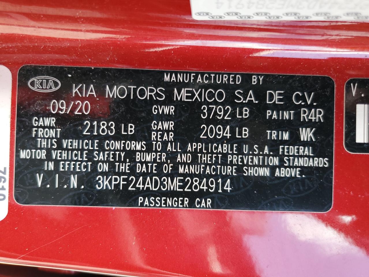 2021 KIA FORTE FE из США