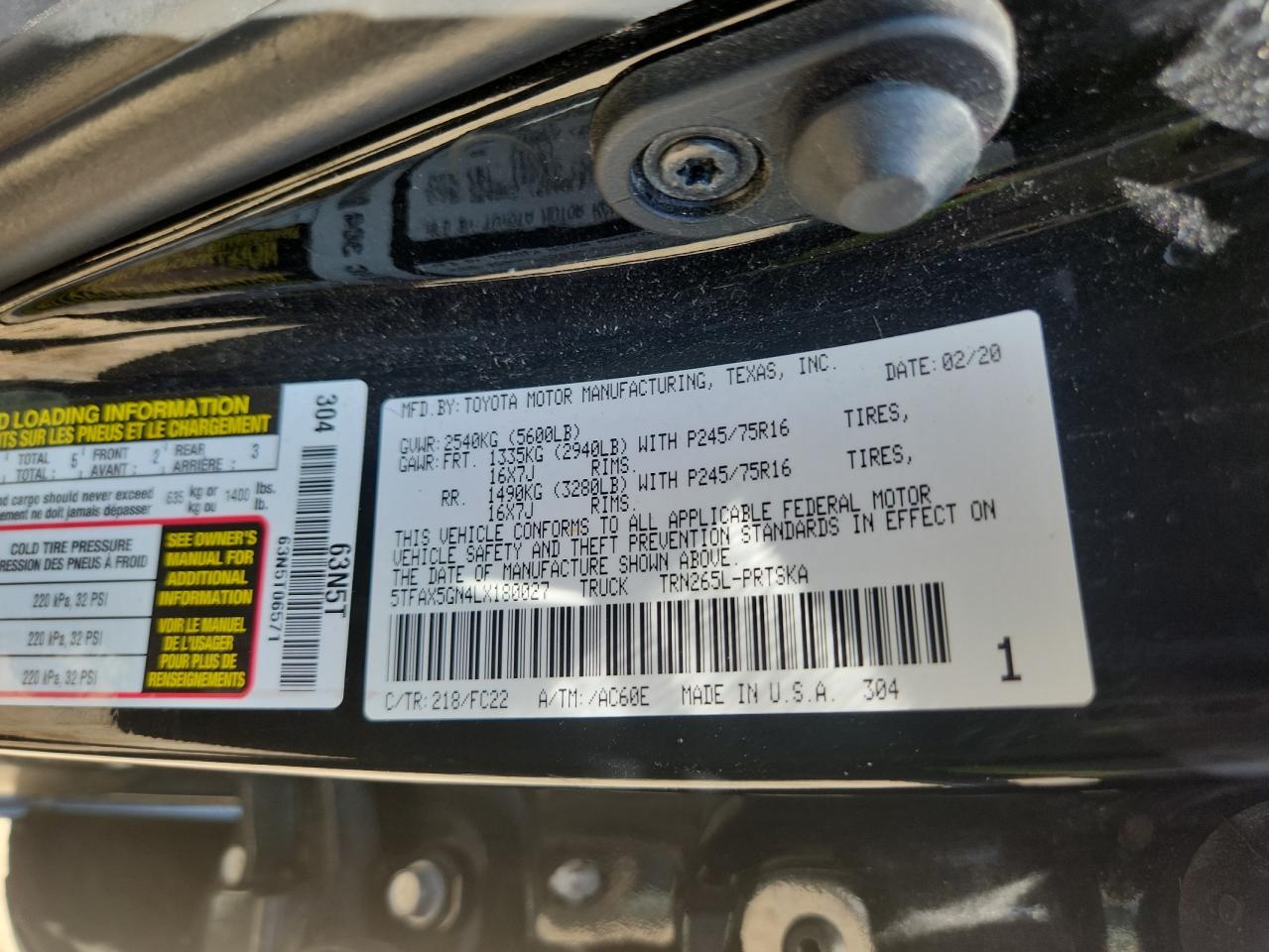 - ВИН: 5TFAX5GN4LX******